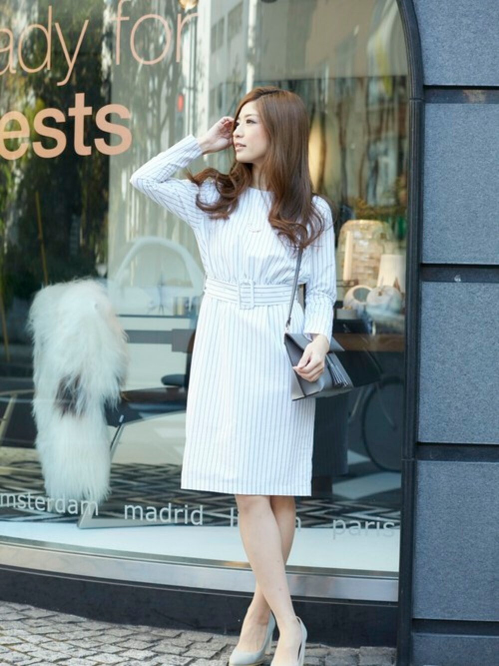 プレス芝田のワンピース「ビッグベルトストライプワンピース」を使ったコーディネート