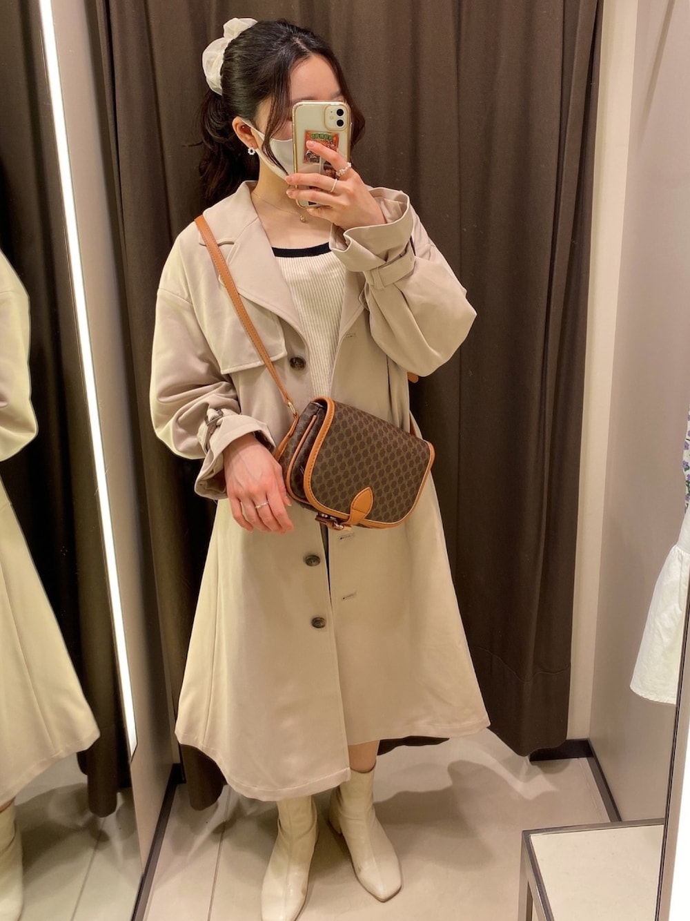 𝒶 𝓎 𝒶のトレンチコート「【S.M.L身長別に選べる】ひらっと揺れるシルエット。フレアロングトレンチコート」を使ったコーディネート