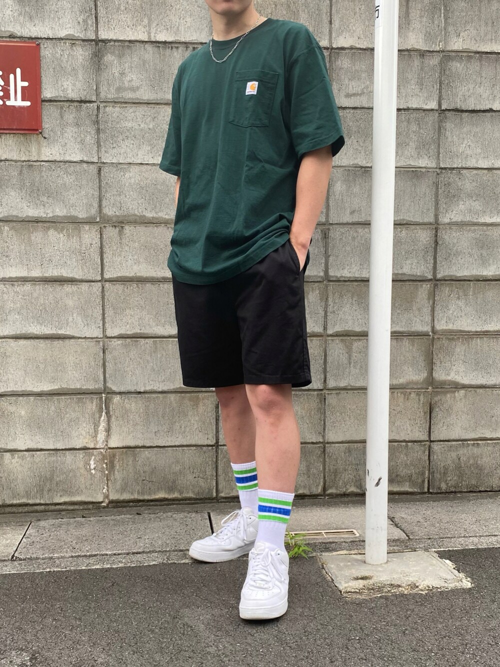 𝒶 𝓎 𝒶のTシャツ/カットソー「Carhartt(カーハート) /USA規格 ヘビーウェイト ルーズフィット ポケT ビッグサイズ オーバーサイズ ユニセックス ポケット付き コットン 半袖 Tシャツ 5部袖 1/2スリーブ」を使ったコーディネート