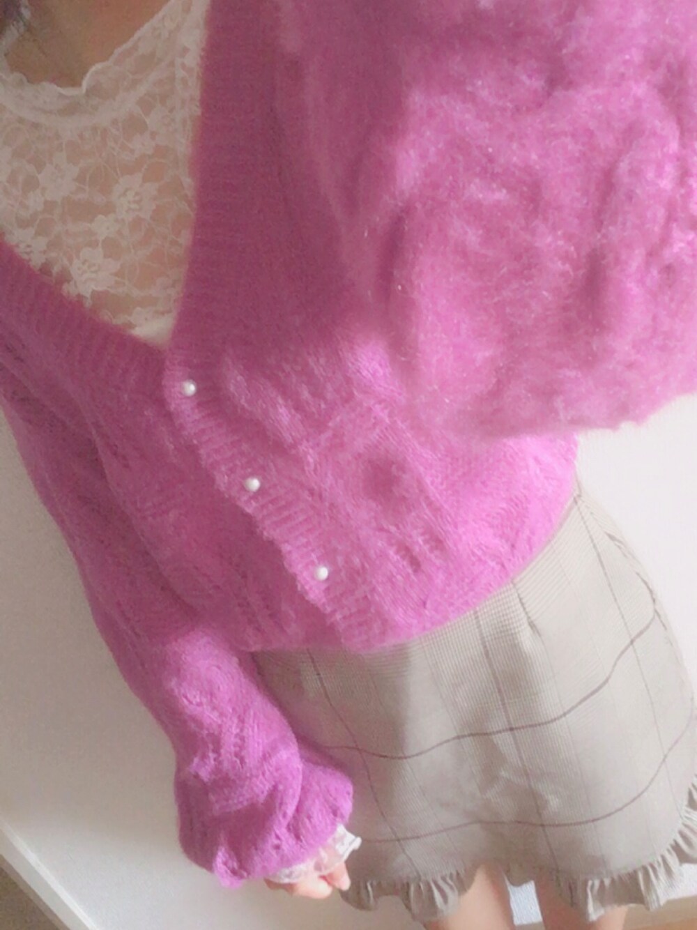 エミリのカーディガン/ボレロ「スカシアミモヘアカーディガン 774246」を使ったコーディネート
