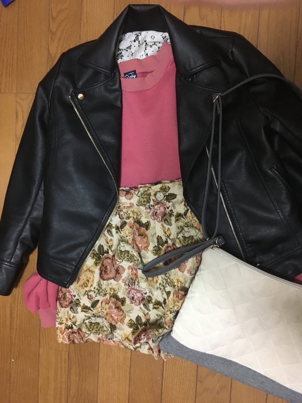 昨日のコーデ。 わたしっぽいと言われました。 ライダースで甘辛っぽく…?