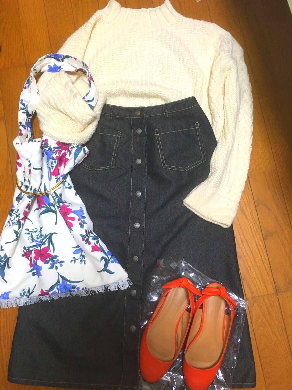 今日はNew bagをポイントにしたかったのでシンプルコーデにオレンジの靴で明るくしてみた🙌 暖かかったからニット一枚でいけた!もう春だね〜🌸