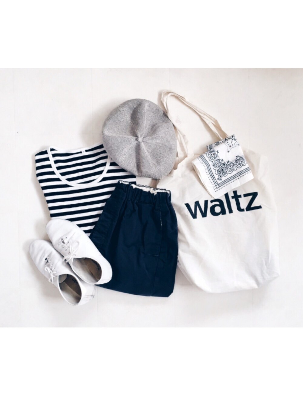 お気に入りのレコード屋さんwaltzでレコードを購入したときに頂いたトートバックが使いやすい。 マチュアーハのベレー帽もリネン素材で通気性がいいので夏は重宝してます。