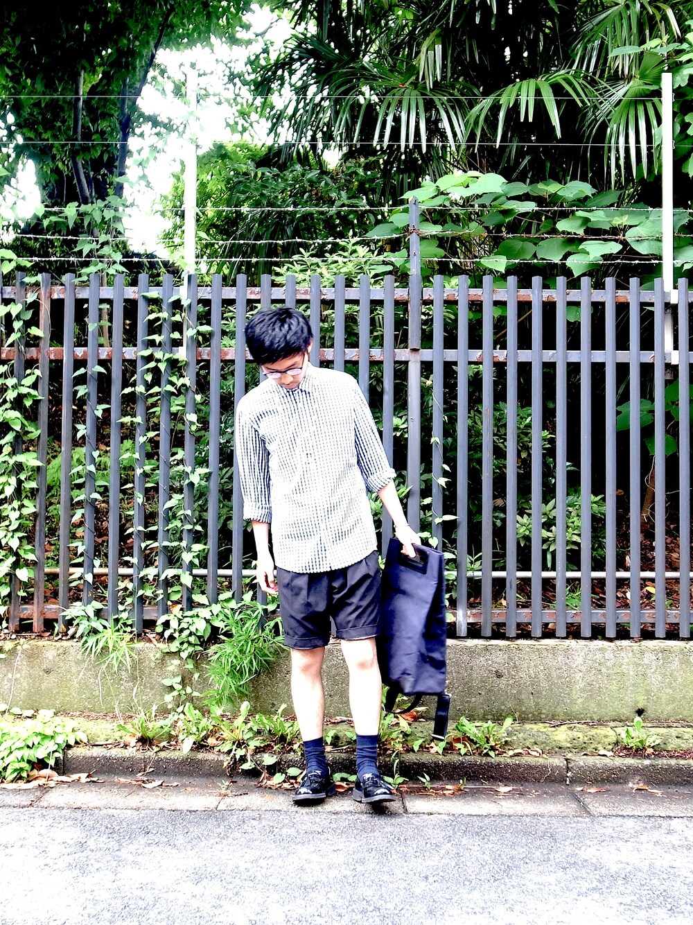 新作のGHURKA SHORTSをメインにしたコーディネート。 パンツのマイクロスウェード生地がシャツSTYLEで上品に。 トラッドな夏STYLEながら、アクセサリーやシューズの異素材感を生かして、どことなくモードにも。 シンプルながらギミックの詰まった着こなしです!! http://www.milokwebonline.com