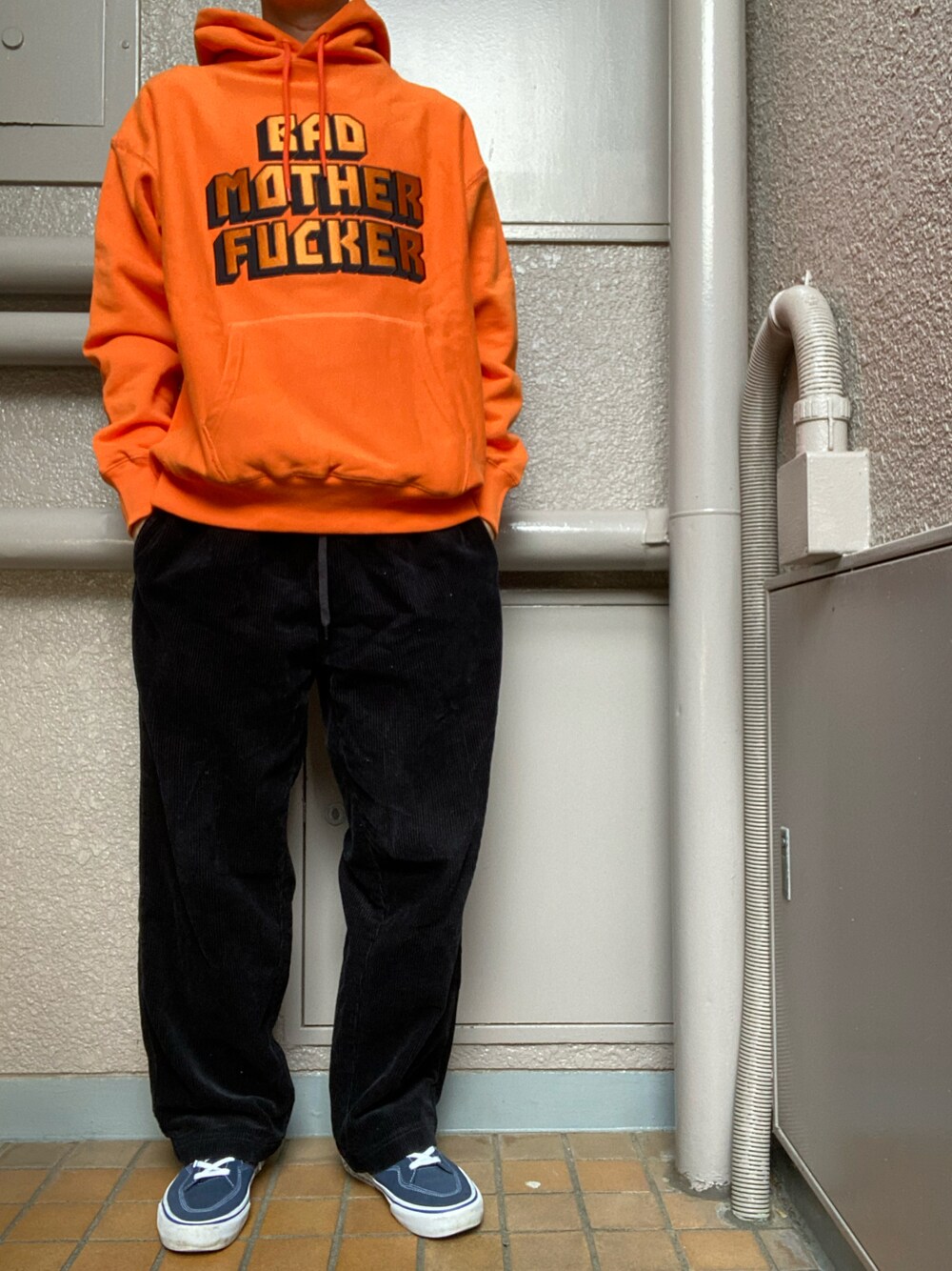 映画「Pulp Fiction」でジュールス役のサミュエル・L・ジャクソンが持っている財布に刺繍された、「BAD MOTHER FUCKER」という文字が前面に描かれたFlugstuffのパーカーは存在感があります。
