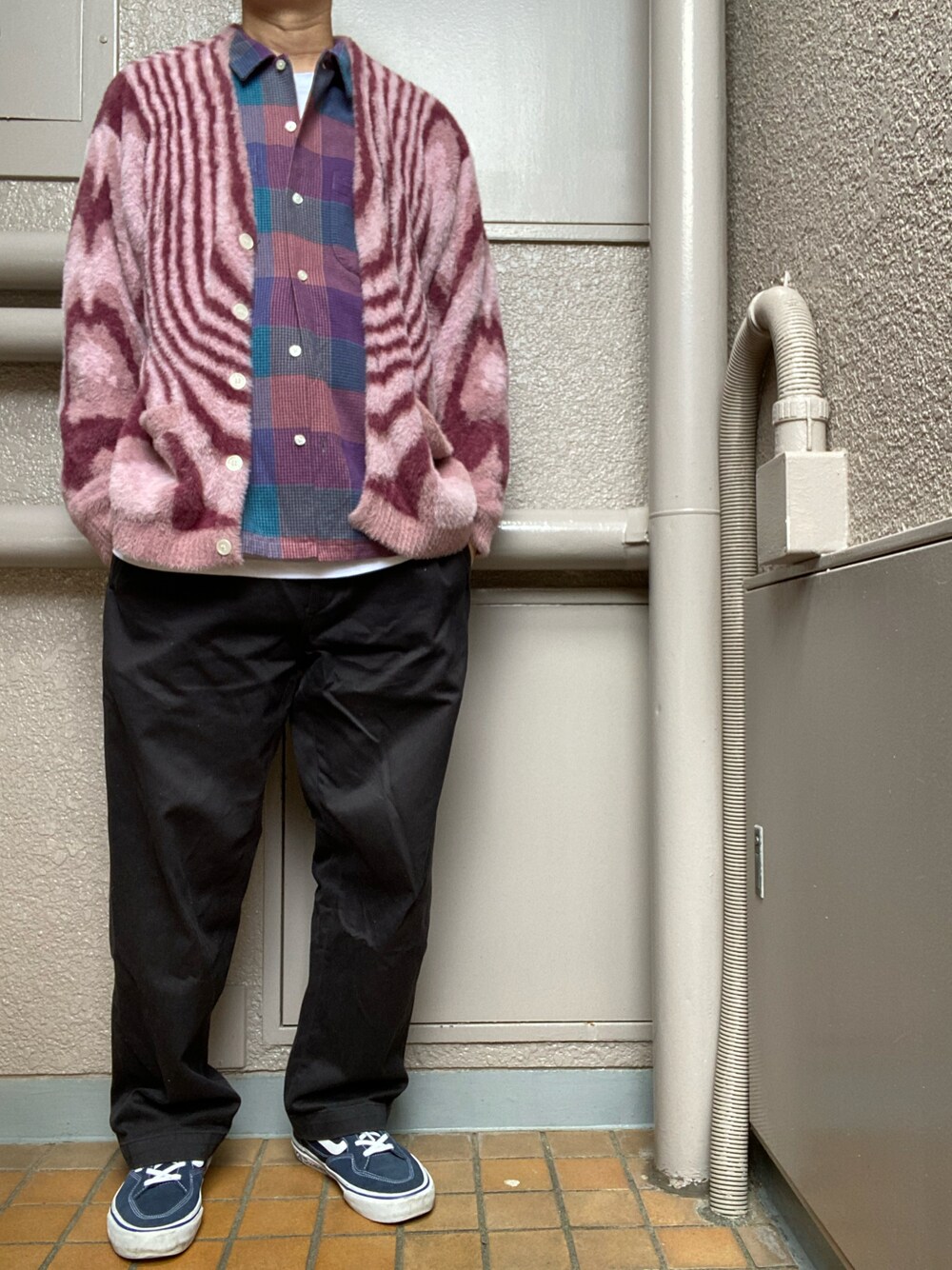 Fucking Awesomeの謎柄カーディガンの季節がきました。見た目に反して、生地はもこもこしていて、手触りがいいです。