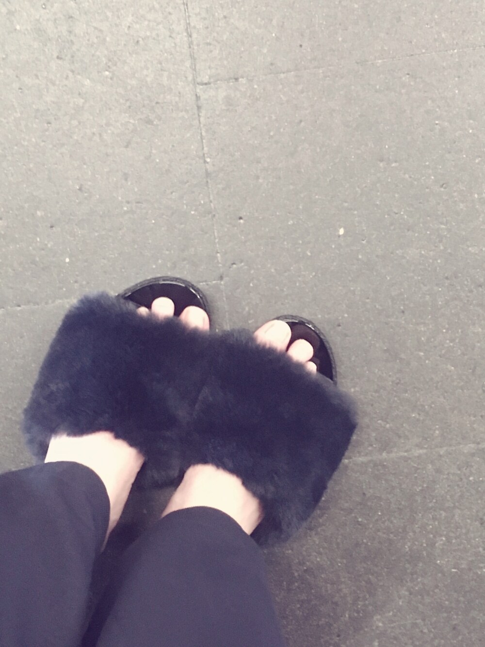 ファーサンダル(´ω`) ペタンコぢゃなく高さがあるのが良かったからこのコにしました((´艸`*)) ホントわリアルファーが良かったけど... あんまり履かないだろーと フェイクで安めな物を(´ω`) でもフェイクだけどフワフワだったよ♡