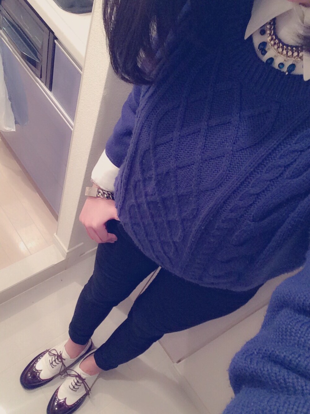 パパとのお出かけだったので 大人しく大人っぽく〜💁💫 diorのシャツはおじいちゃんの! ほんとにスタイル良かったから メンズの物でも私が着れてしまう…笑 ブレスレットとブランドで合わせました💡 コートはELLEのチェスターで バックはleeのコーデュロイのクラッチ😋✨