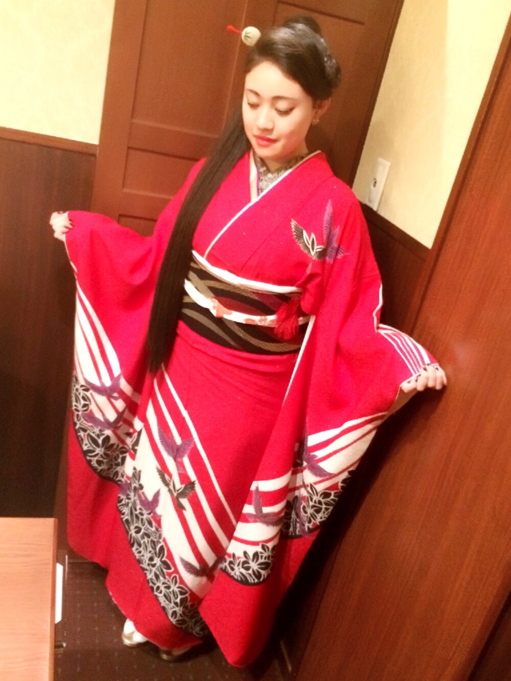 3.11 大学の卒業式🏢🌸 成人式に買ってもらった振袖で出席しました💡 ヘアはスーパーロングでポニーテールにママの簪✨