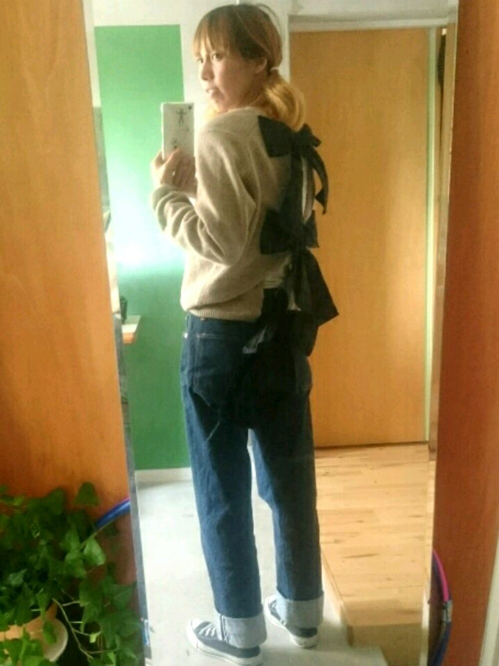 作ったリメイクknitを着て、銀行へ。