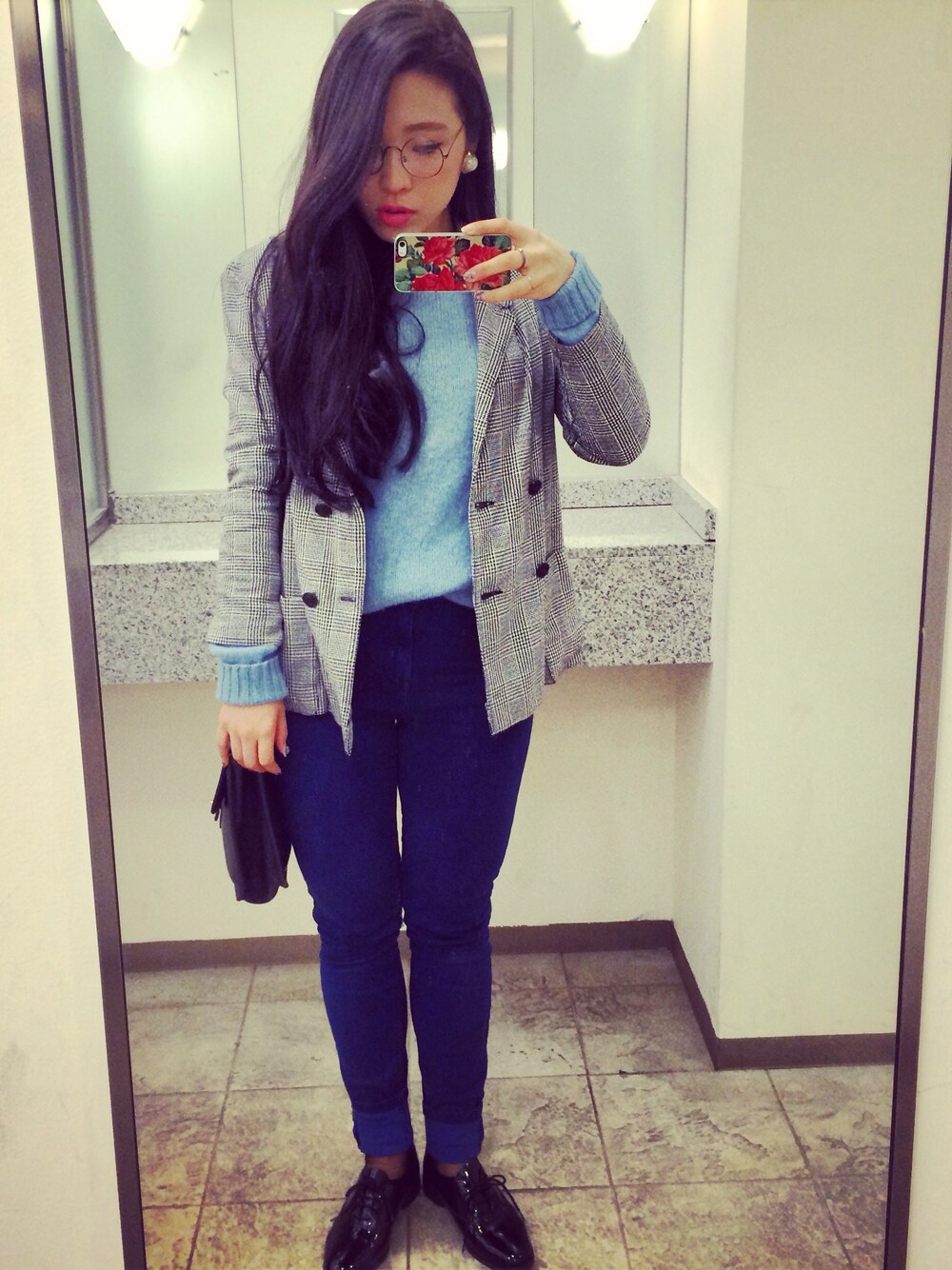 ジャケット:古着 ニット:古着 パンツ:ZARA 靴:アメアパ バック:コーチ