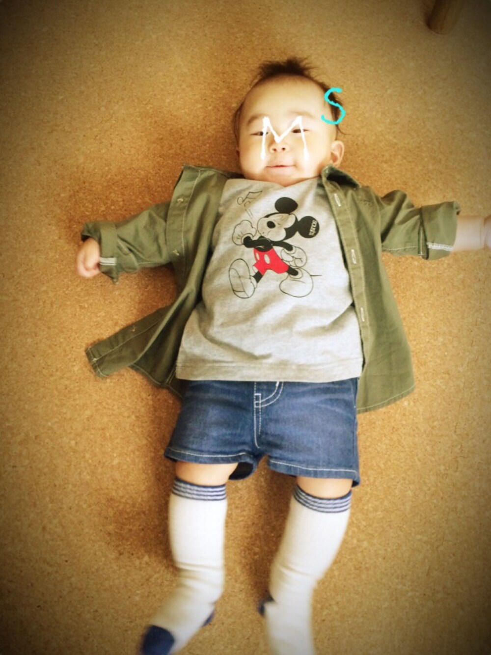 babyのmickeyTシャツがなかなかなくて…作った方が早いって事でネーム入りで作りました♡ 300円のTシャツにステッカー経費150円(*´艸`*)
