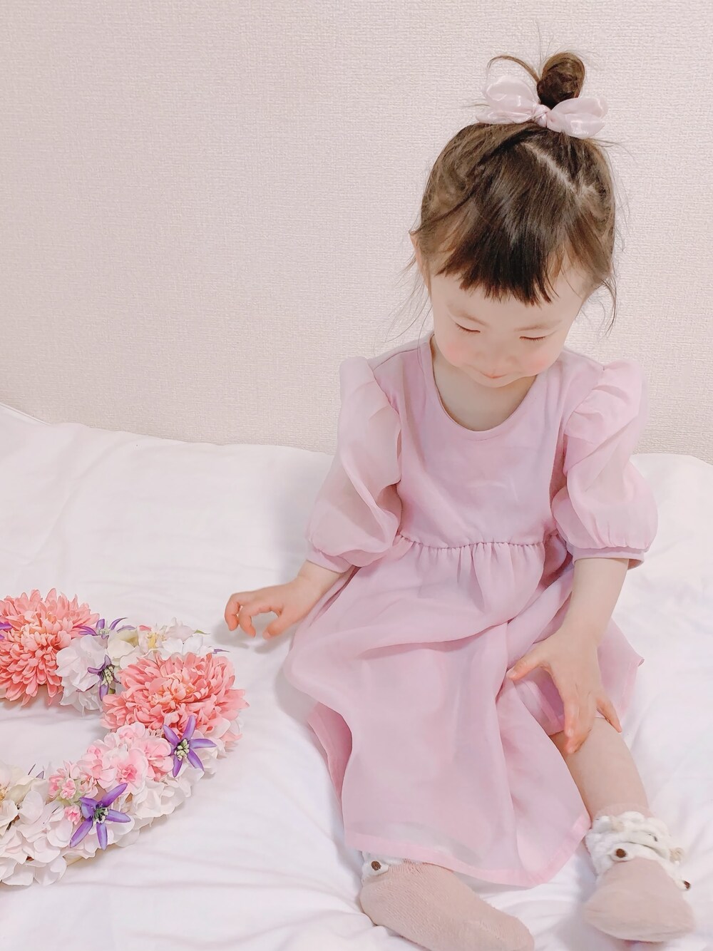mi-mi❁︎のワンピース「バルーン袖長袖ワンピース」を使ったコーディネート