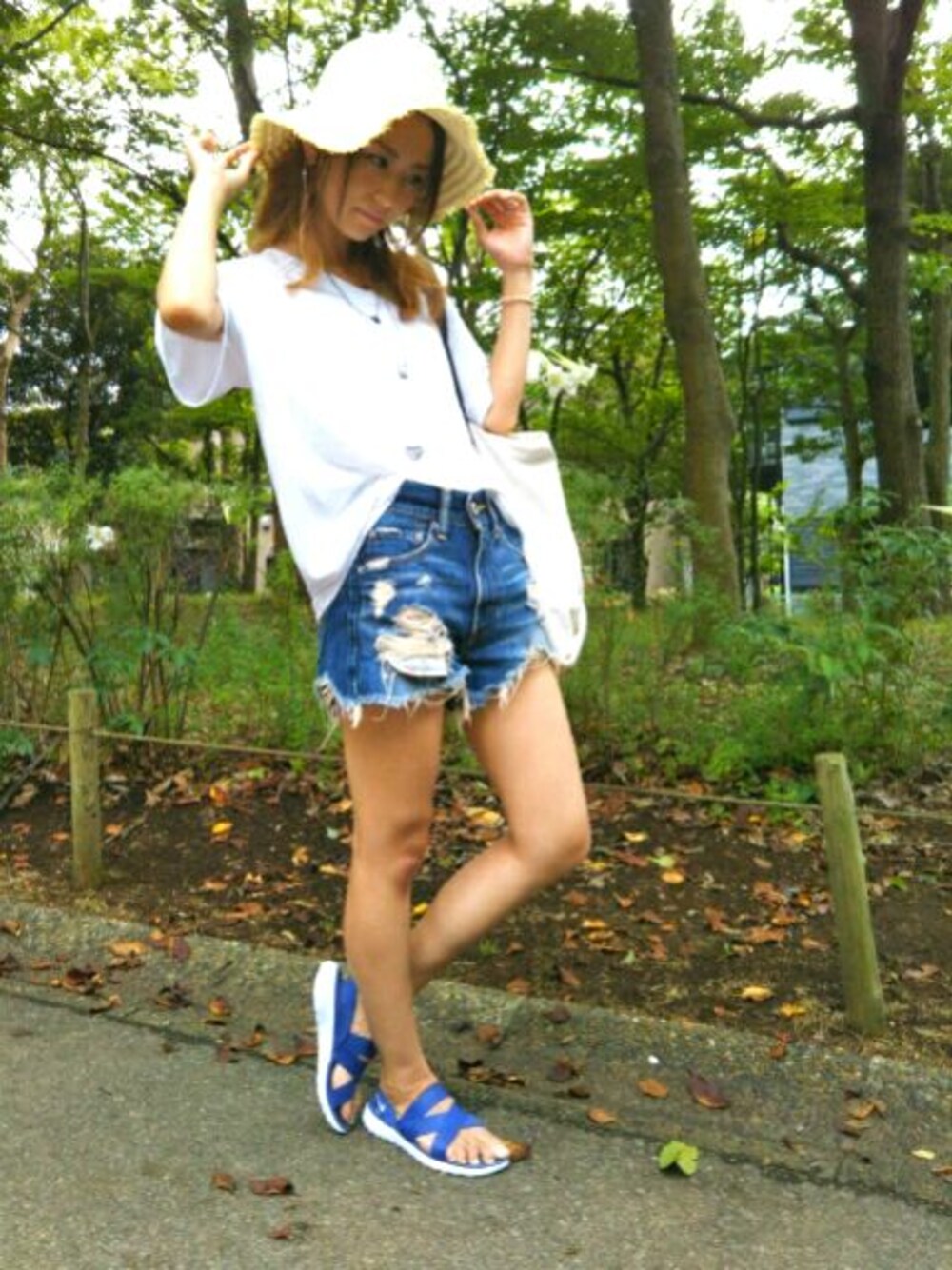 みーにゃんのTシャツ/カットソー「ロールUP BIG Tシャツ」を使ったコーディネート