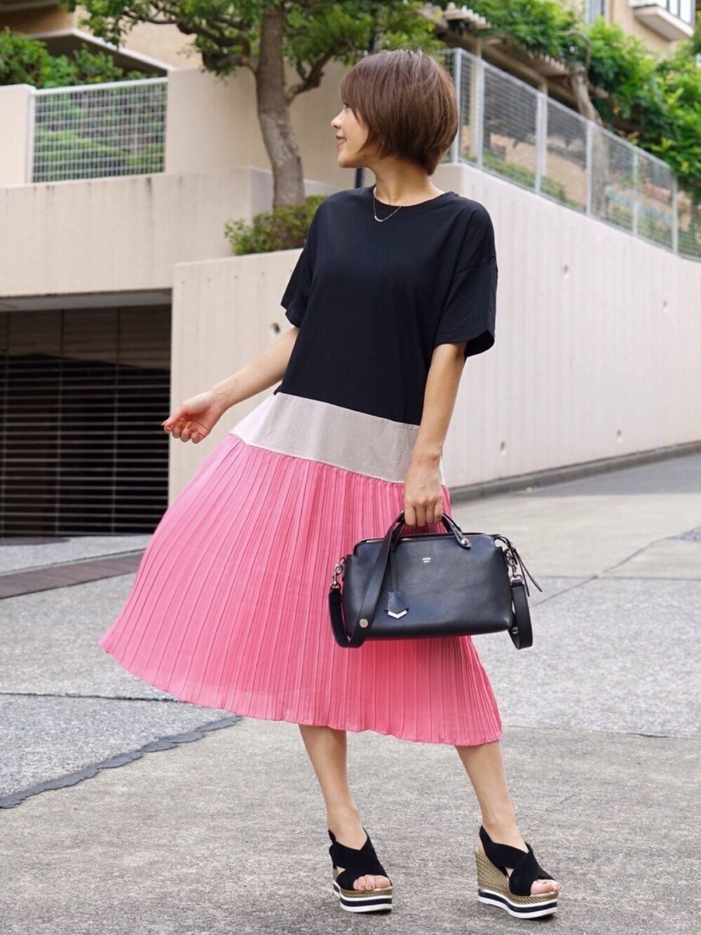 miya0520laのワンピース「バイカラー大人プリーツワンピース」を使ったコーディネート