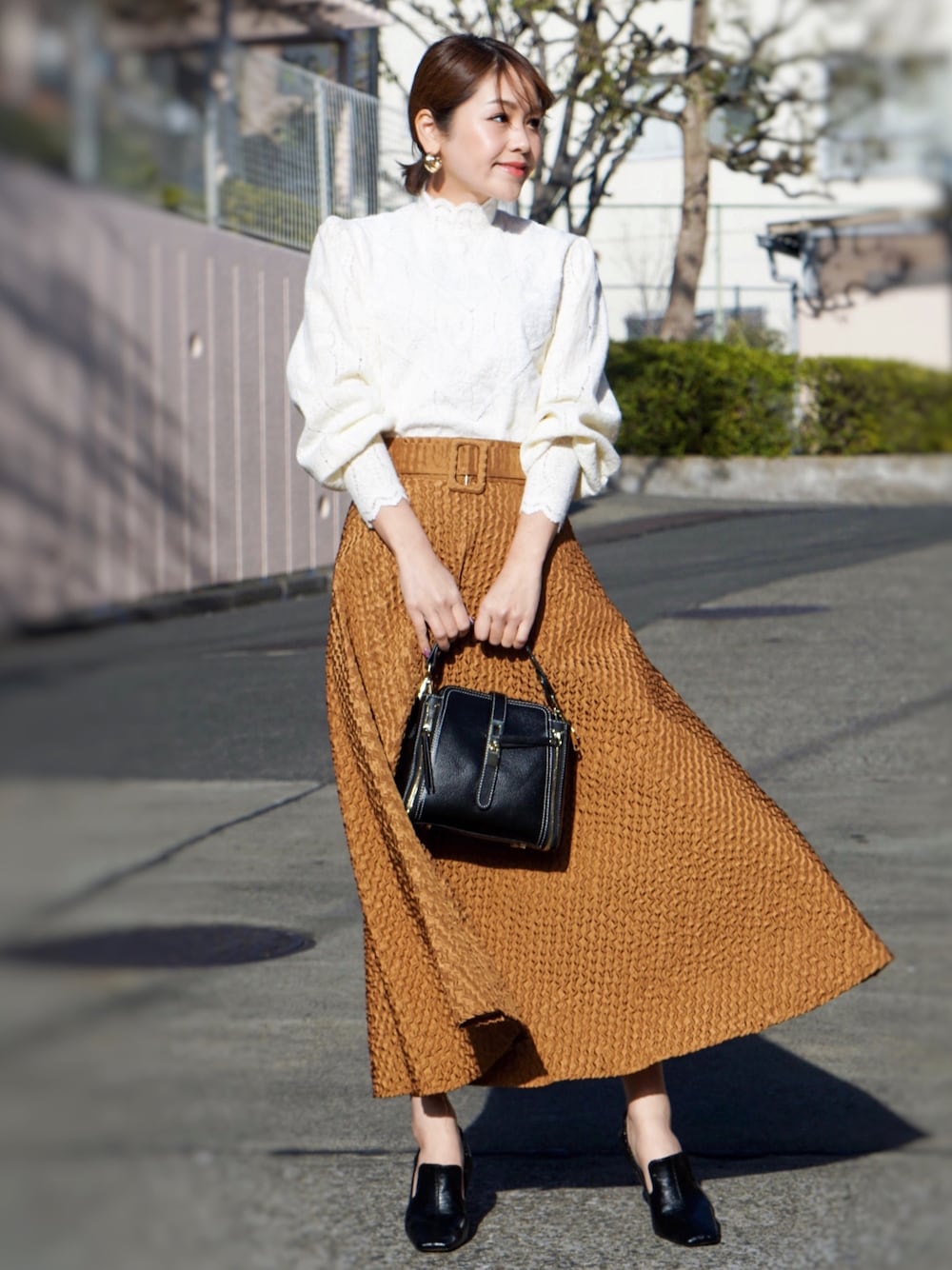 お気に入りのスカートメインのcoordinate💃💓 レースブラウスと合わせて上品に🥰 全身mimiendの新作です🌹 Instagram更新しました❣️ ▷▶︎▷▶︎miina__mimiend