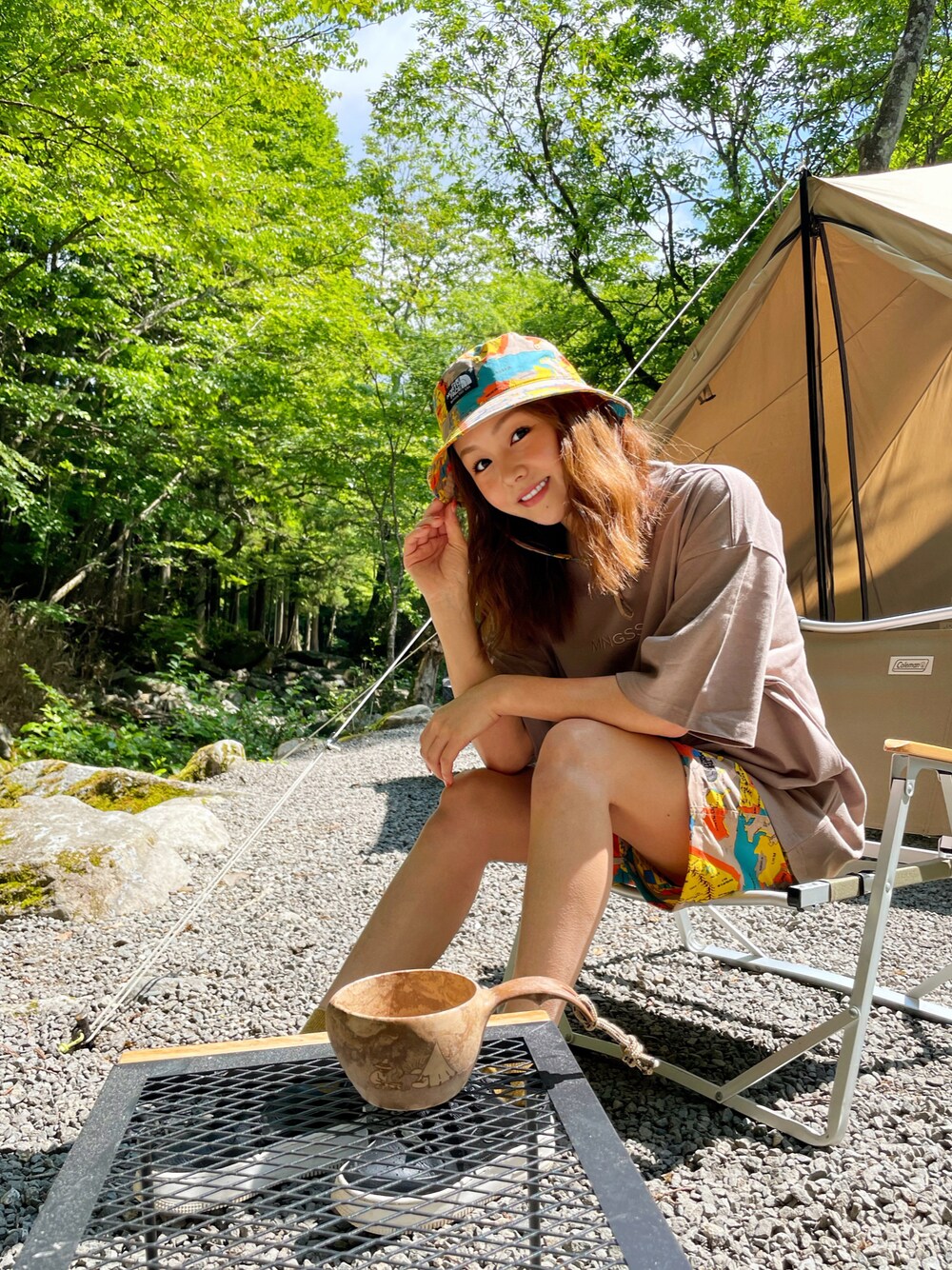 キャンプコーデ🏕 新しく買ったノースフェイスのハットとハーフパンツ🥰 どっちもキッズのもの😂 帽子はキッズのLで、パンツは150サイズがちょーどだった👏 TシャツはMNGSSのユニセックスでSサイズ。 ゆるっとしたシルエットが可愛くてお気に入り♡