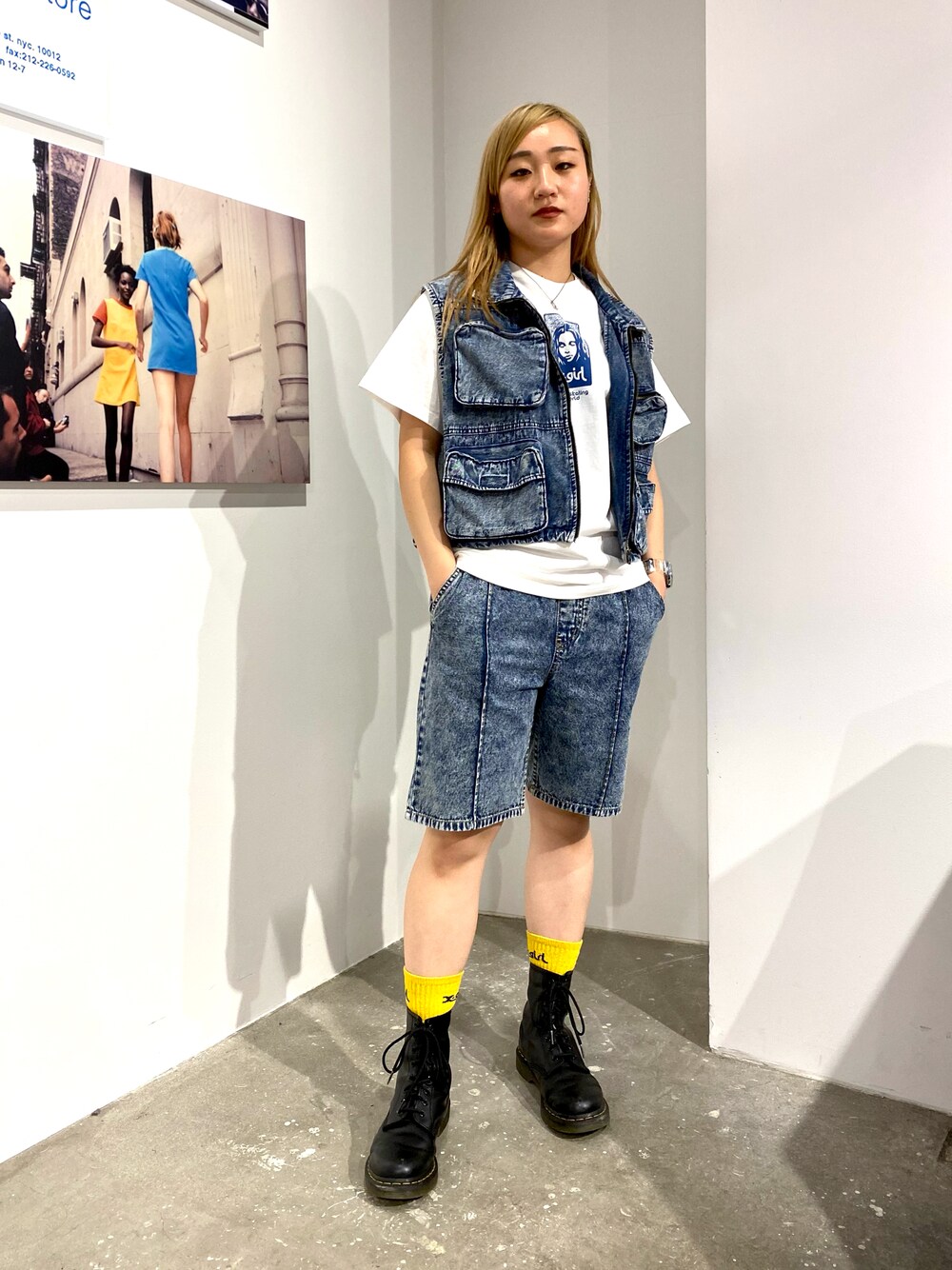 Miy(XLARGE/X-girlお台場(X-girl))のデニムパンツ「CHEMICAL WASH EASY HALF PANTS/ケミカルウォッシュ ハーフイージーパンツ」を使ったコーディネート