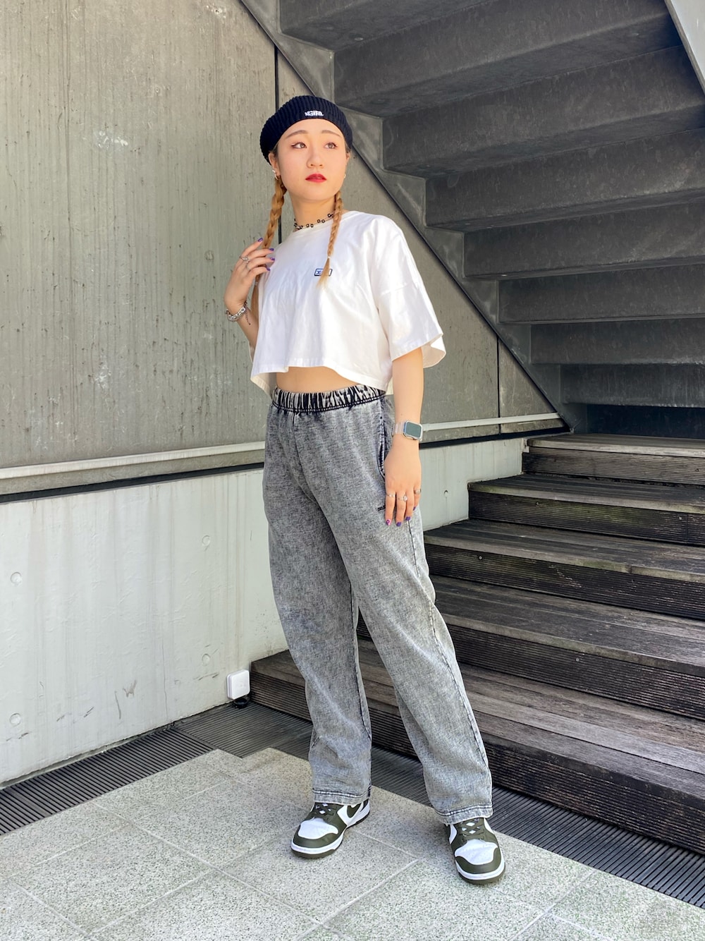 Miy(XLARGE/X-girlお台場(X-girl))のTシャツ/カットソー「BOX LOGO S/S WIDE TEE/ボックスロゴ ワイドTシャツ」を使ったコーディネート