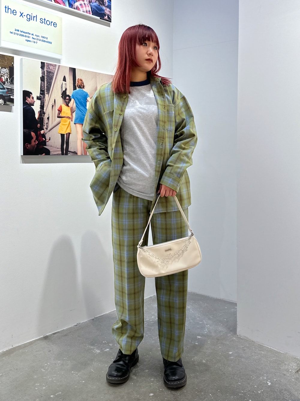 Miy(XLARGE/X-girlお台場(X-girl))のTシャツ/カットソー「GUMMED TAPE PRINT L/S TEE」を使ったコーディネート