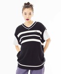 Miy(XLARGE/X-girlお台場(X-girl))のベスト「BICOLOR STRIPED KNIT VEST」を使ったコーディネート