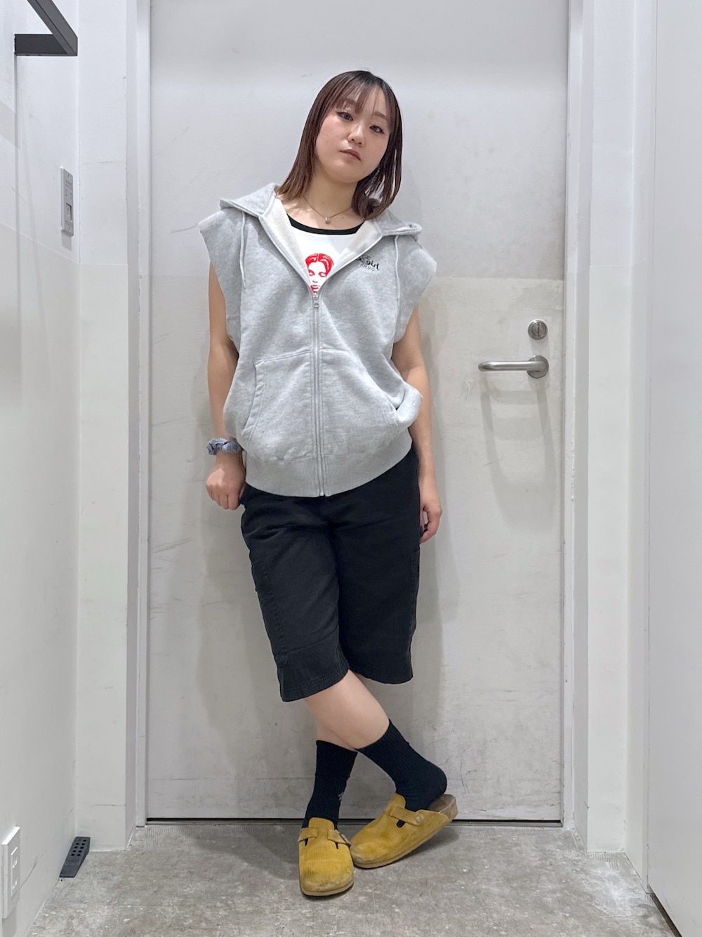 Miy(XLARGE/X-girlお台場(X-girl))のベスト「DISTRESSED CIRCLE LOGO ZIP UP SWEAT VEST」を使ったコーディネート