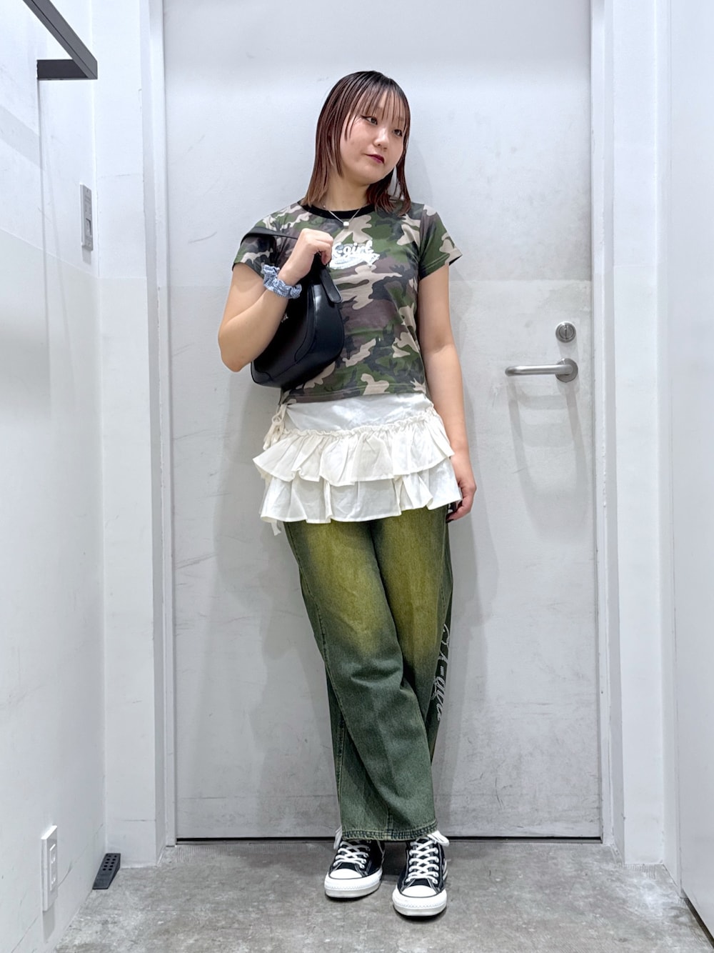 XLARGE/X-girlお台場スタッフ 身長162センチ ⠀ ︎⚫︎いつものサイズ トップス:Lサイズ パンツ:Mサイズ ⠀ ⚫︎着用サイズ <TOPS:S/PANTS:S> トップスはCAMO柄が可愛いコンパクトなTシャツです! パンツは裾の部分にラインストーンがついてて可愛いです!Sサイズでジャストのサイズ感でした! ー Instagram【@mi_mi__f2001】 ⬆︎オンライン完売商品が当日発送出来る店舗通販や 取置などのお問い合わせはDMまでお願い致します😌🧡