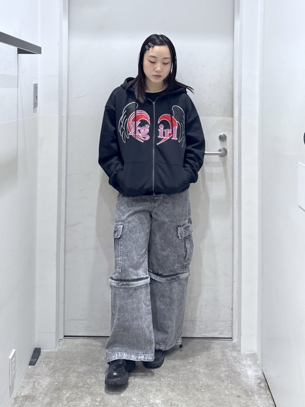 Miy(XLARGE/X-girlお台場(X-girl))のカーゴパンツ「WASHED 2WAY WIDE LEG CARGO PANTS」を使ったコーディネート
