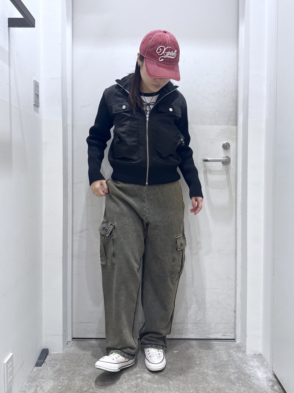 Miy(XLARGE/X-girlお台場(X-girl))のスウェットパンツ「OVERDYED NUMBER PATCH CARGO SWEATPANTS」を使ったコーディネート