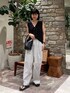 ストライプパンツ、ウエストがめちゃくちゃ伸びるんです!! 楽ちんすぎて毎日履きたくなっちゃう🥱✨