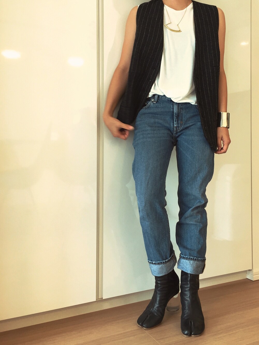 最近ロングベストばかりだったので、 普通丈のベストにしました。 そして、 そろそろブーツ履きたかったので。笑 エアリフト用の靴下履いてるので、 足袋ブーツ脱ぐと NIKEがジャーンと現れます👀ww