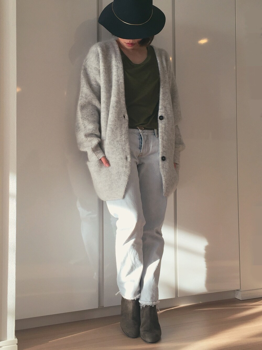 気に入って二枚買いしたカーデ。 かーなり前にアップした 芝生カラーのカーデの色違いです。 一枚で着れる時期は芝生カラーの方が着てたけど アウター着るようになると こっちのライトグレーの方が使えます。 お店に春物が出始めてきて まだ着れないのに早くも色々気になってます。 ハイゲージのロングニットワンピと オーバーサイズのブラックのシャツ を狙っております👀