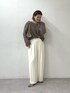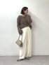 大人のニュアンスコーデ◎ 柔らかく優しい印象のフェザーニットにホワイトボトムを合わせてニュアンシーな秋コーデ。 ニットは前後2wayなので、好みのネックラインを楽しめます◎ パンツは38サイズを着用しています!
