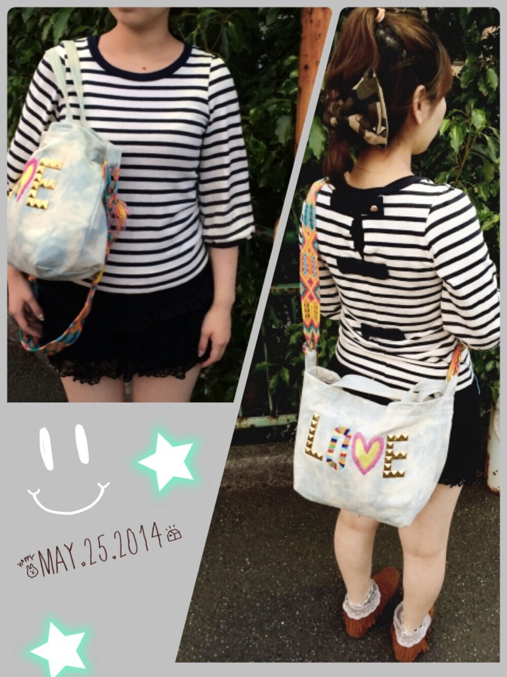 kaonのトップスはリボンがかわいくて大好き☻ バッグは2wayで便利です。ちょっと入れすぎた。 太っちょですが、スナイデルのボトムはサイズ1なら入ります☆