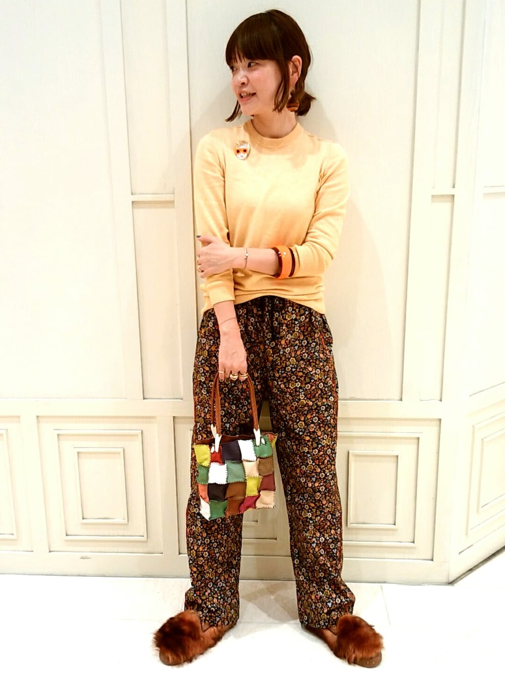 最近黒っぽい色を選びがちだったので、今日こそは違う色を。 選ぶ色で気分も気持ちも変わるものです。 柄のパンツが好きです。