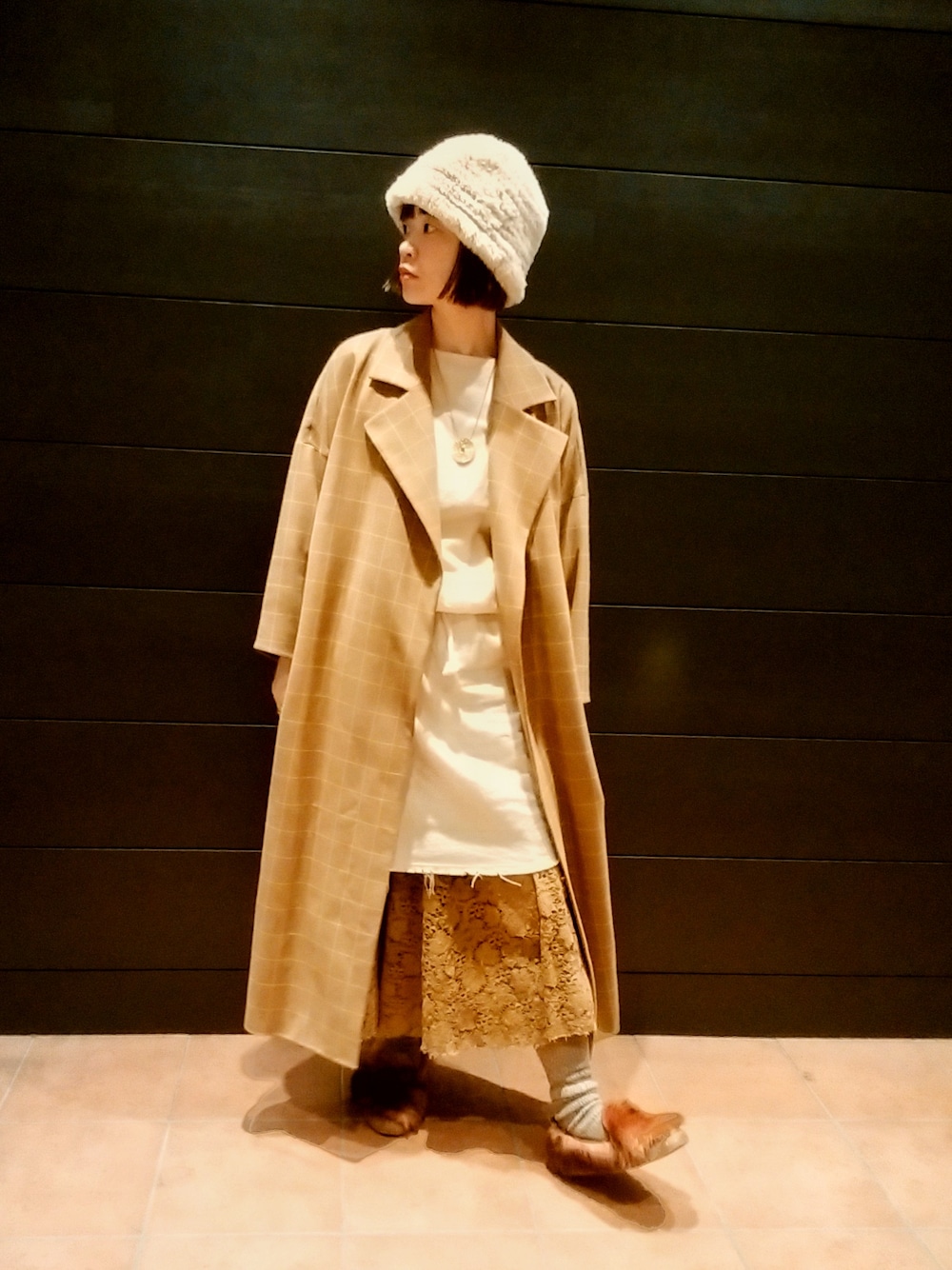 久しぶりに好みのコートに出会えました。 中にたっぷりしたニットも着られそうで、色々コーディネート考えるのも楽しみです。 今日はワンピースの下に、レースのスカートを重ねました。