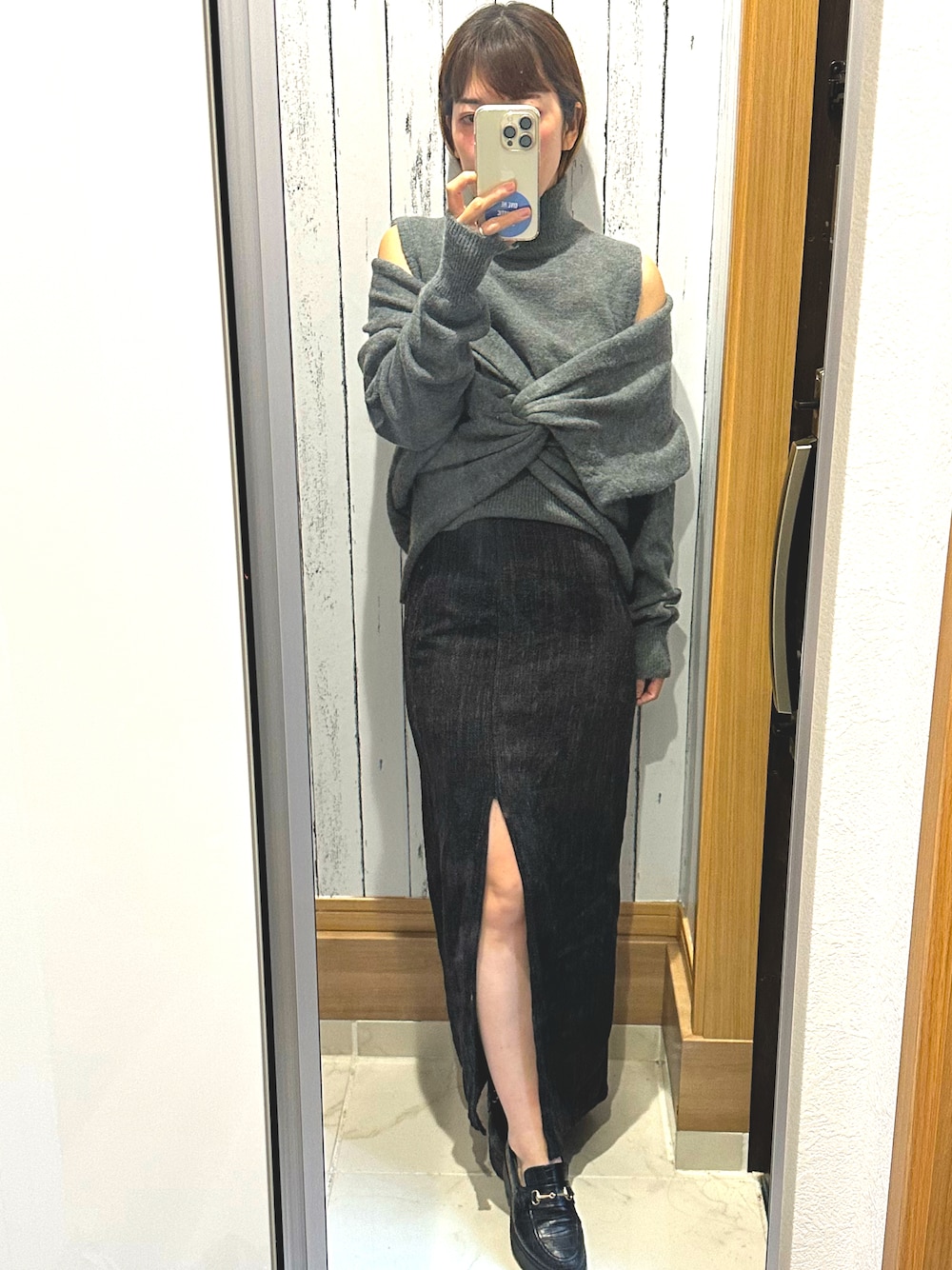 ♡indigolovE♡のニット/セーター「ノースリーブタートルネックニット カシュクールセーター セットアップ」を使ったコーディネート