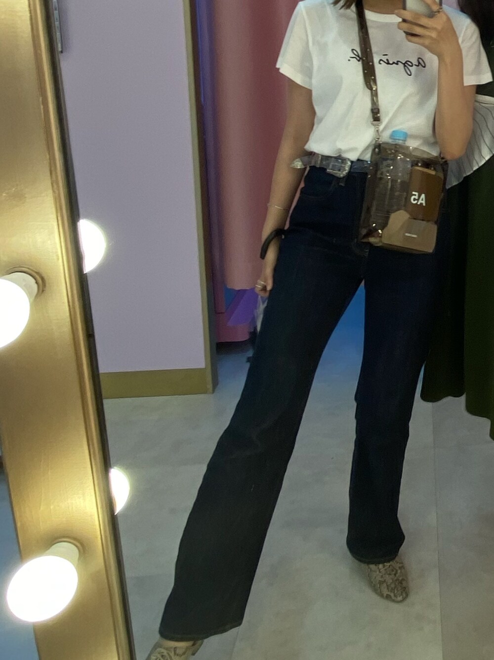 今日はたくさんご飯を食べる日だったからゆるめコーデ🌹🌹 Tシャツを目立たせたかったので他はシンプルだけどラフすぎないようにパイソン柄のミュールでアクセント🖤 クリアリングにクリアバック、クリアベルトで夏感マシマシ!やりすぎ感なく流行りが盛れる🐷🐷
