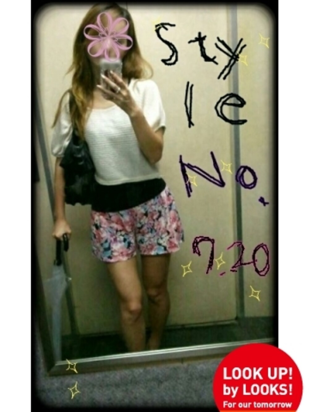 flower short pants 雨でも気分は明るく! 中花の色合いが可愛いショーパンをチョイス♡ トップスのニットカットはちょっとパフってて女の子っぽい♪