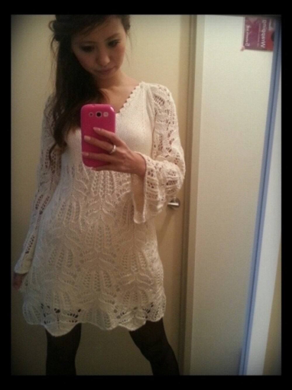 knit onepiece かぎ針の透かしニットワンピはwhiteチョイスで女子度♡