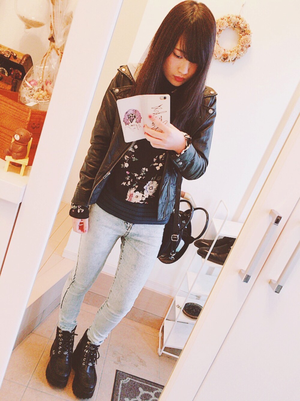 今日のコーデ。 ブラックメインのコーデにしました! ブラウスの袖のフリルがめちゃくちゃかわいくて中に着てるセーターがタートルなので首元もかさねてる感じが出てるのがポイントです☺︎︎ 最近これといった服に出会っていないのと、金欠なので着回しばかりしてます(´・・`) スキニーは買っていたのに1度も履いていなくて黒スキニーだと真っ黒になってしまうのでこれにしました! しかしこのスキニー寒い( ˙-˙ ) あったかいワイドパンツほしいですね~♪