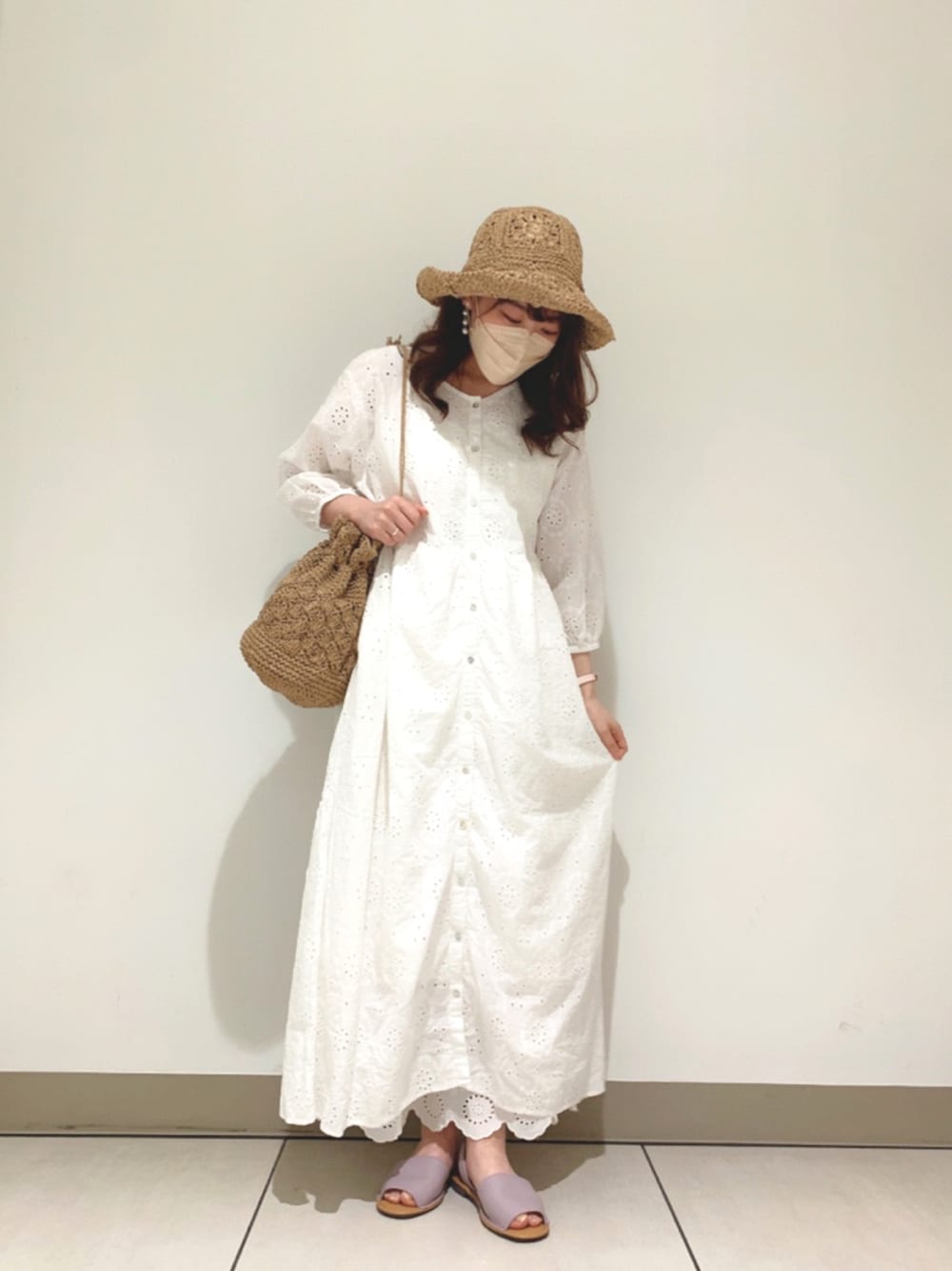 mo.のハット「ペーパークロシェハット」を使ったコーディネート