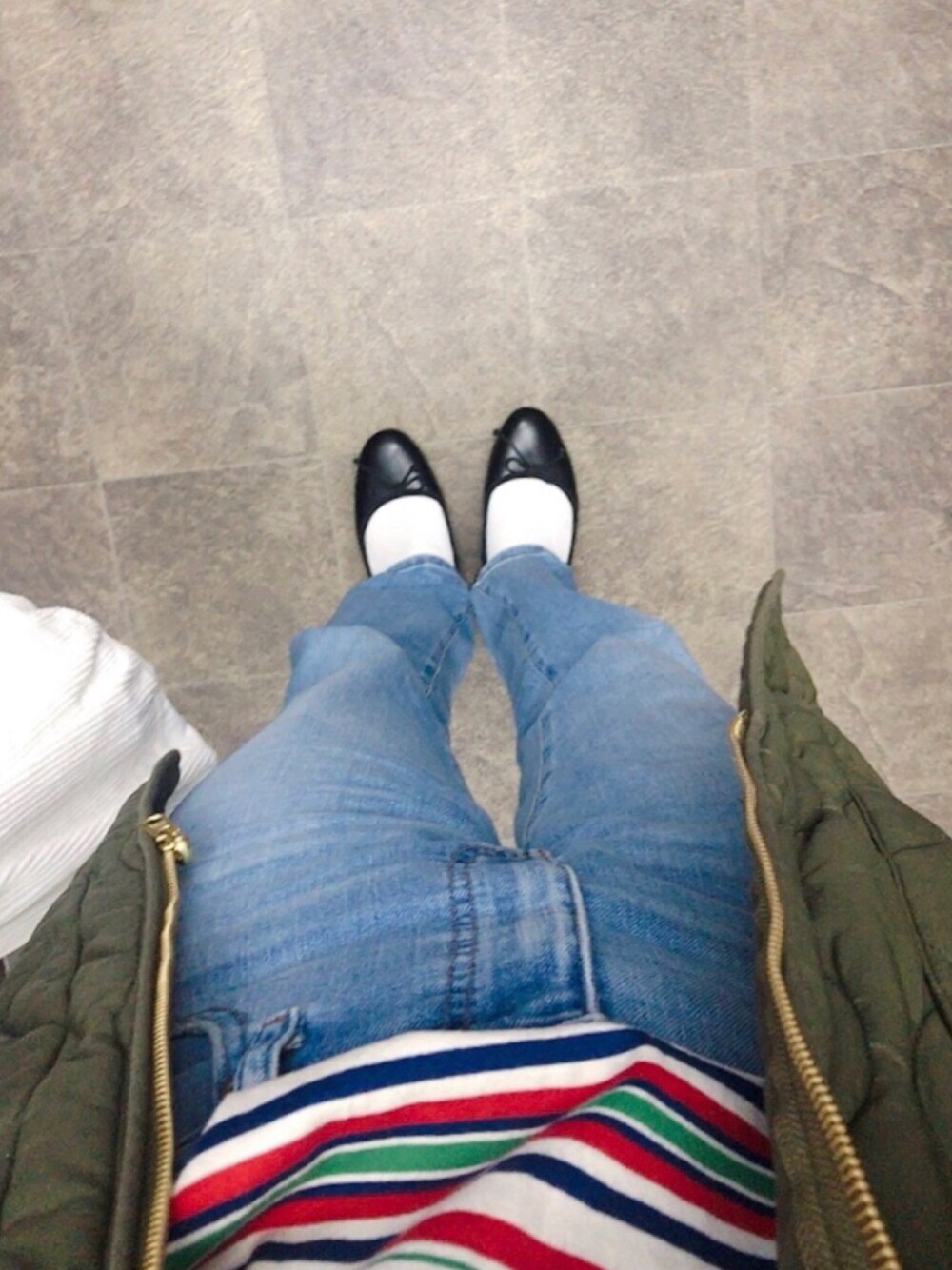 ボーダーシャツの袖が長めだから、あったかくてよいです◎