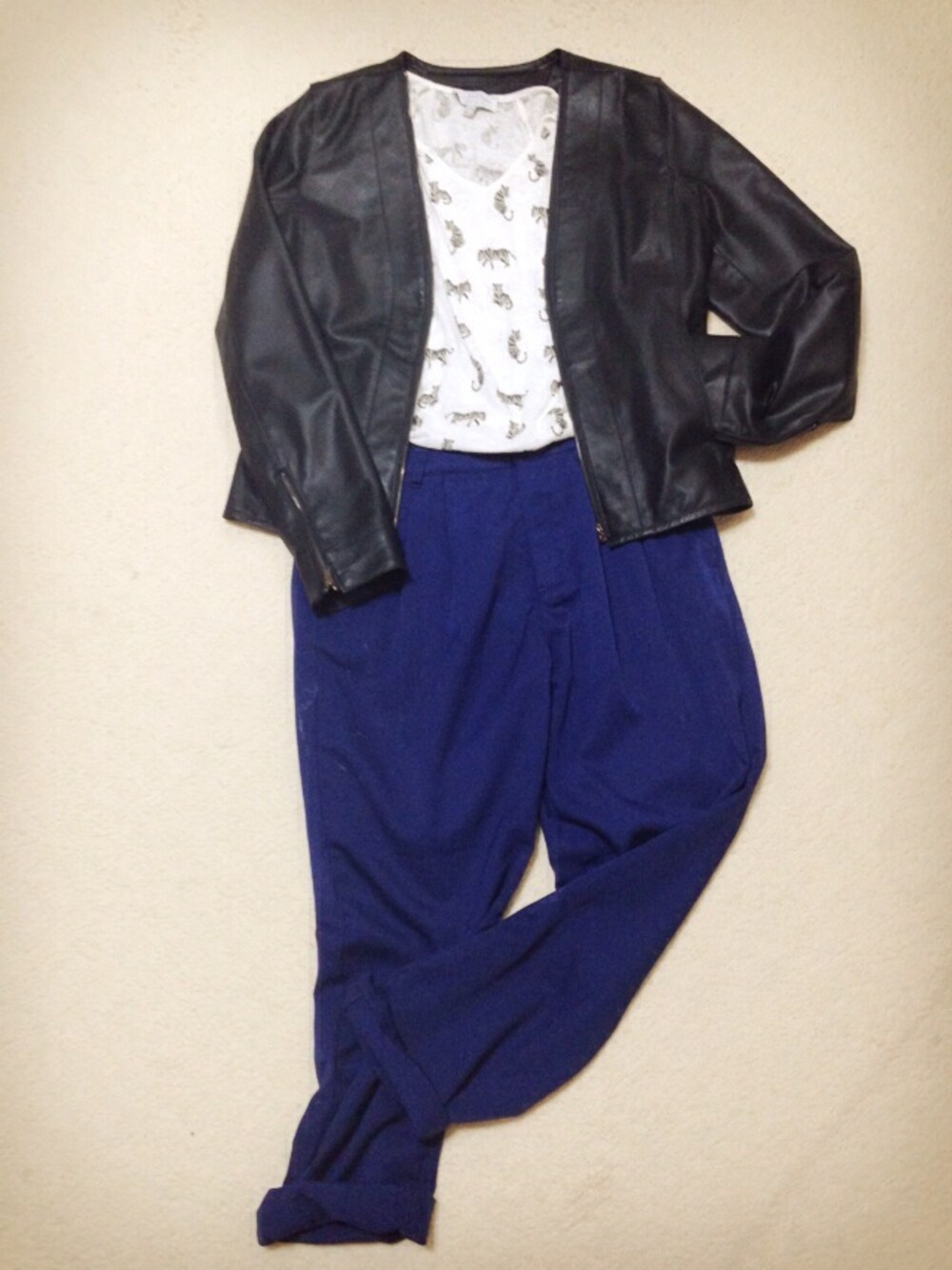 ジャケット:Roomy's Tシャツ:ZARA パンツ:Honey’s ペタンコおじ靴を合わせてマニッシュに。 ZARAのTシャツはトラ?ネコ?よくわからないけど、可愛すぎて一目惚れ。 アニマルプリントがすきすぎるーー