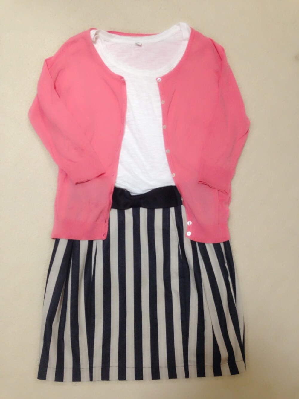 カーディガン:earth music and ecorogy Tシャツ:UNIQLO スカートISBIT Daikanyama ISBITのスカートは絶妙なふんわり感で脚が細く見える気がする このスカートを着てから、タイトスカート着れるかも?!ってなった