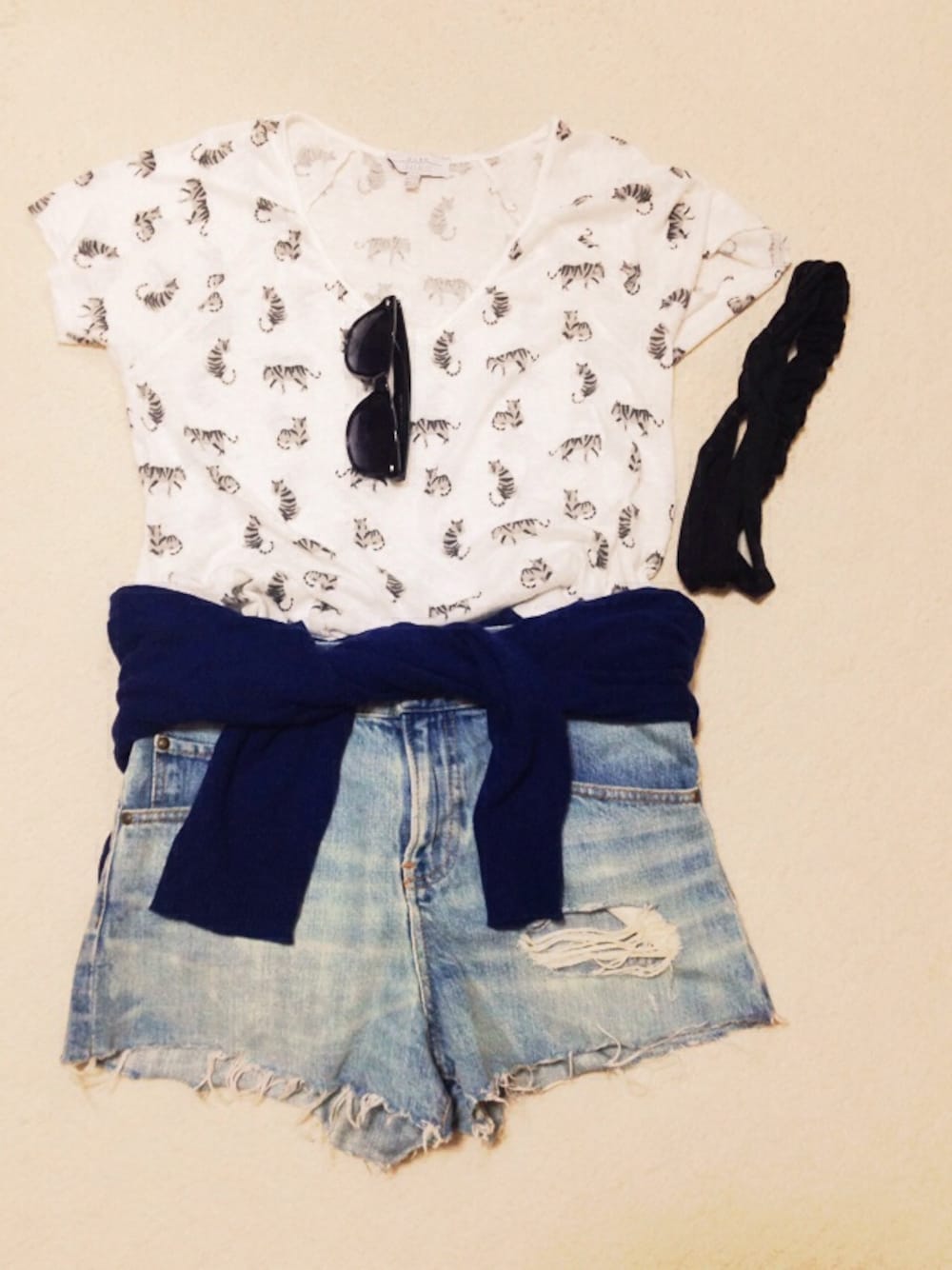 夏になったらしたいコーデ♡ Tシャツ:ZARA ショートパンツ:マジェスティックレゴン カーディガン:マウジー サングラス:マルイ 靴:トムズ バッグ:しまむら ヘアバンド:雑貨屋