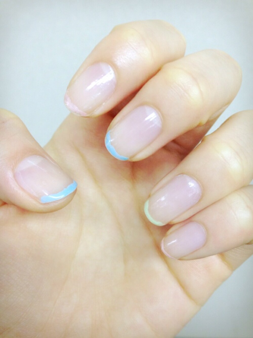 この前の水玉がハデだったので、 水玉だけ落としてアレンジ^ ^ 水色の主張が強いから グリーンとピンクをもっと太めにすればよかった…