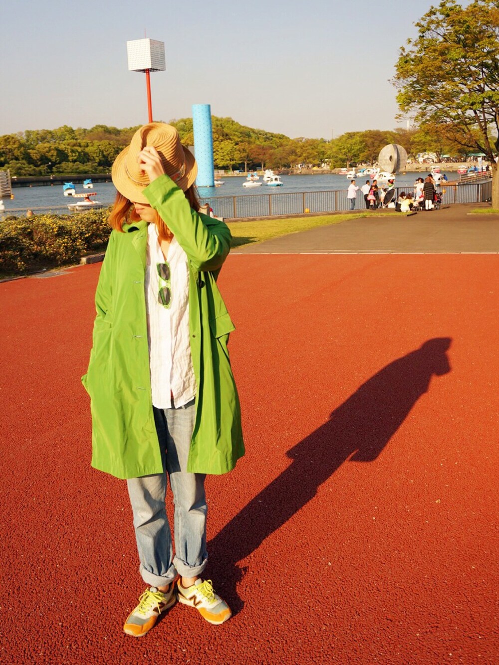 いい天気過ぎた! グリーンだよー グリーンが多いとこに行ったので、ジャケットもサングラスもスニーカーもグリーンで!