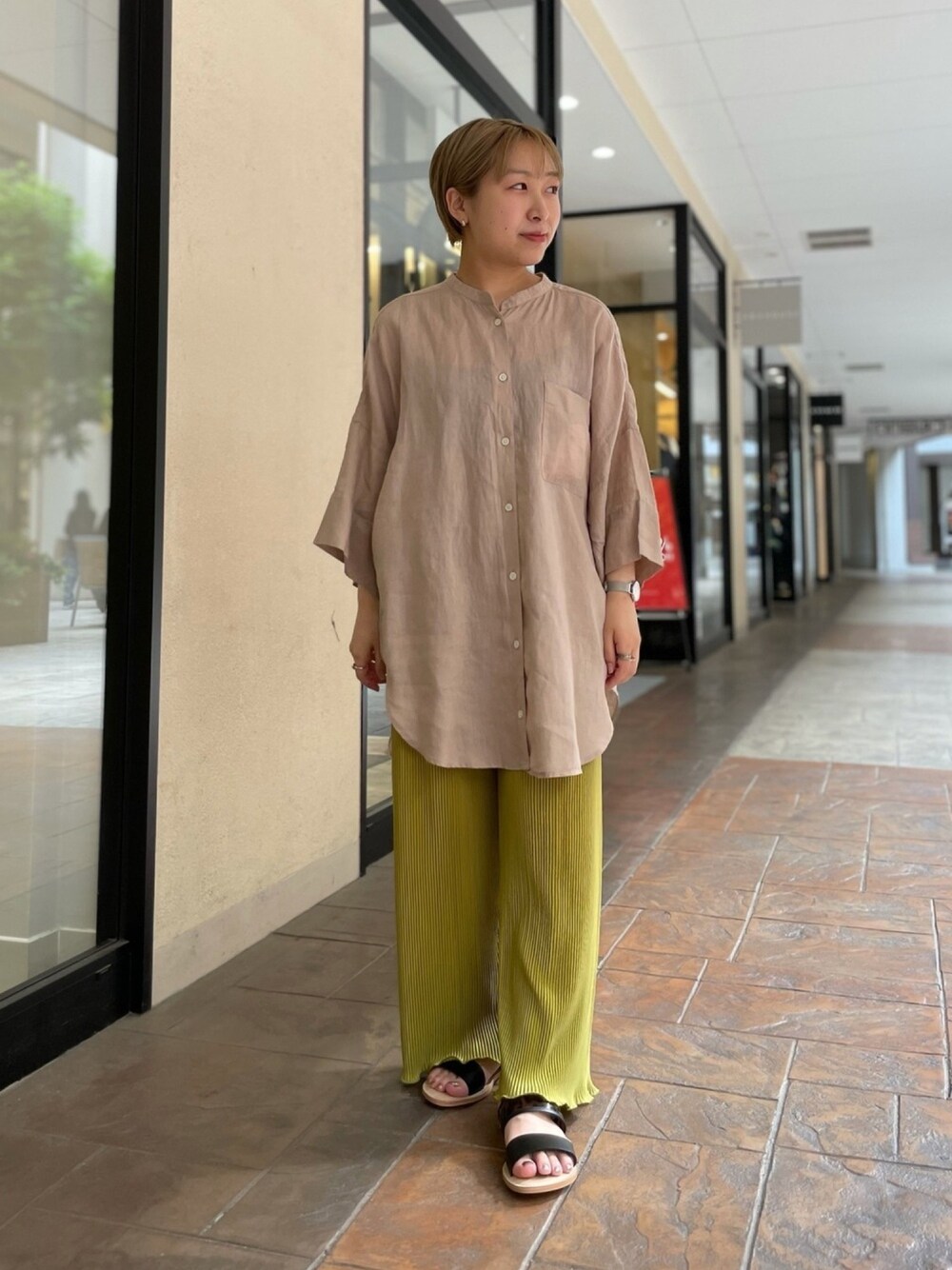 リネンの季節がやってきたした! ベージュとライムの組み合わせがお洒落で可愛い🍋 パンツはウエストがゴムになっていて楽ちんです♪