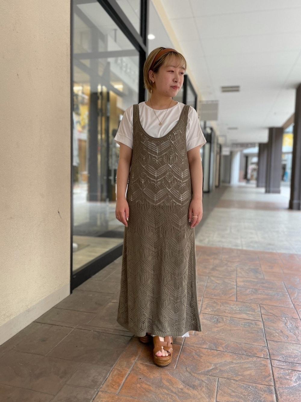 表情のある透かし編みニットは1枚でコーデをオシャレにしてくれます◎ 中をワントーンにする事で透けすぎずに着られますよ✨